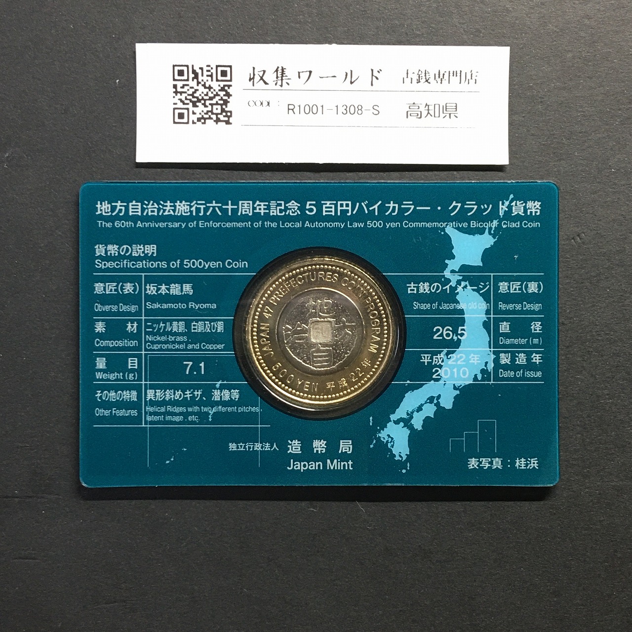500円バイカラークラッド貨 地方自治法施行60周年記念 高知県 カード型に関しての問合せは、下記より気軽にご連絡下さい。