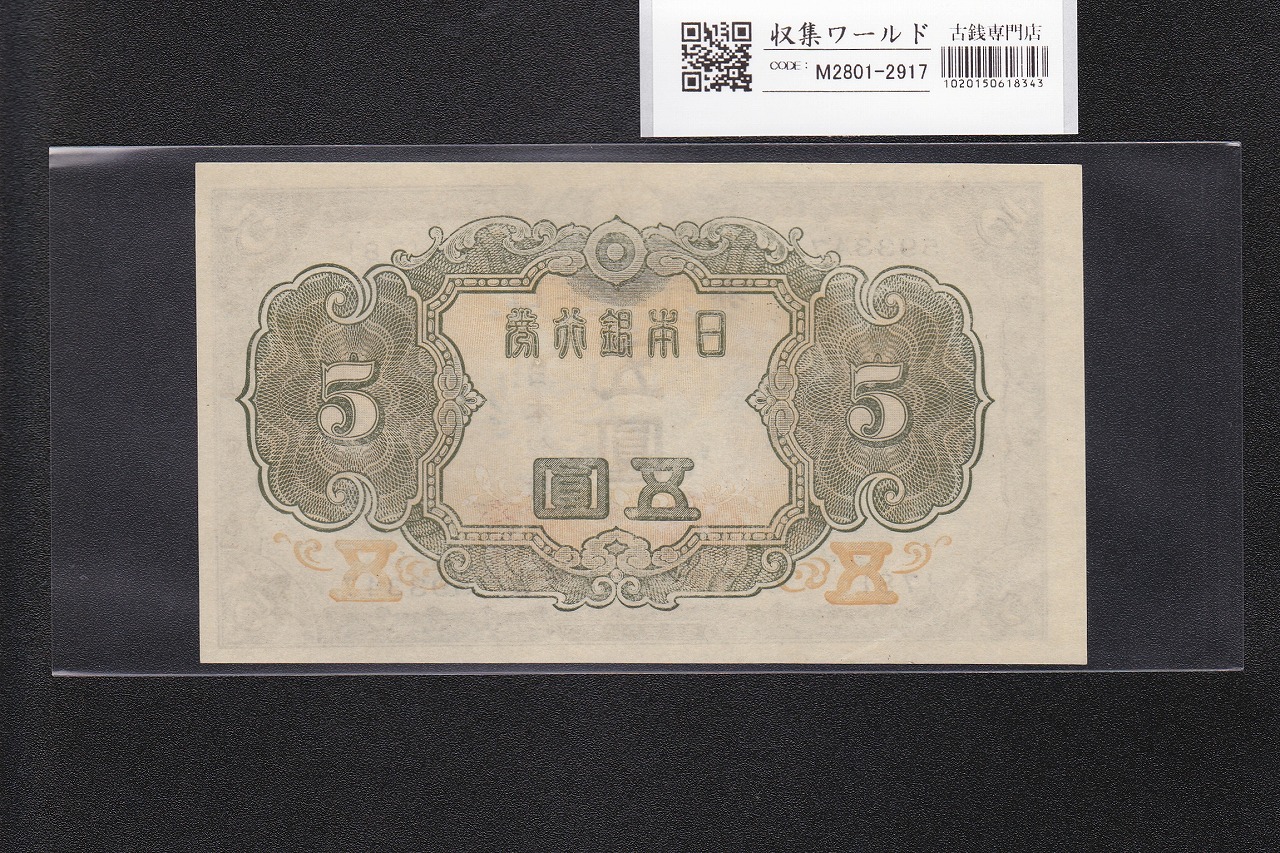 菅原道真 5円札 1944年銘 不換紙幣 3次5円札/番号.78-593347 未使用