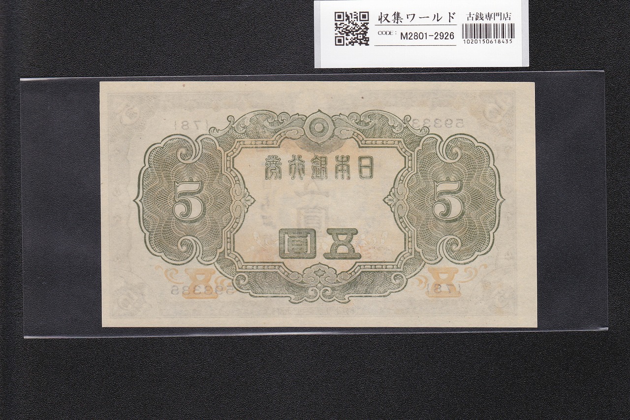 菅原道真 5円札 1944年銘 不換紙幣 3次5円札/番号.78-593338 未使用