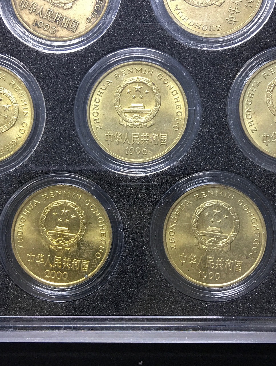 中国人民銀行 梅花 5角黄銅貨 1991年〜2001年銘 ケース入/11枚セット