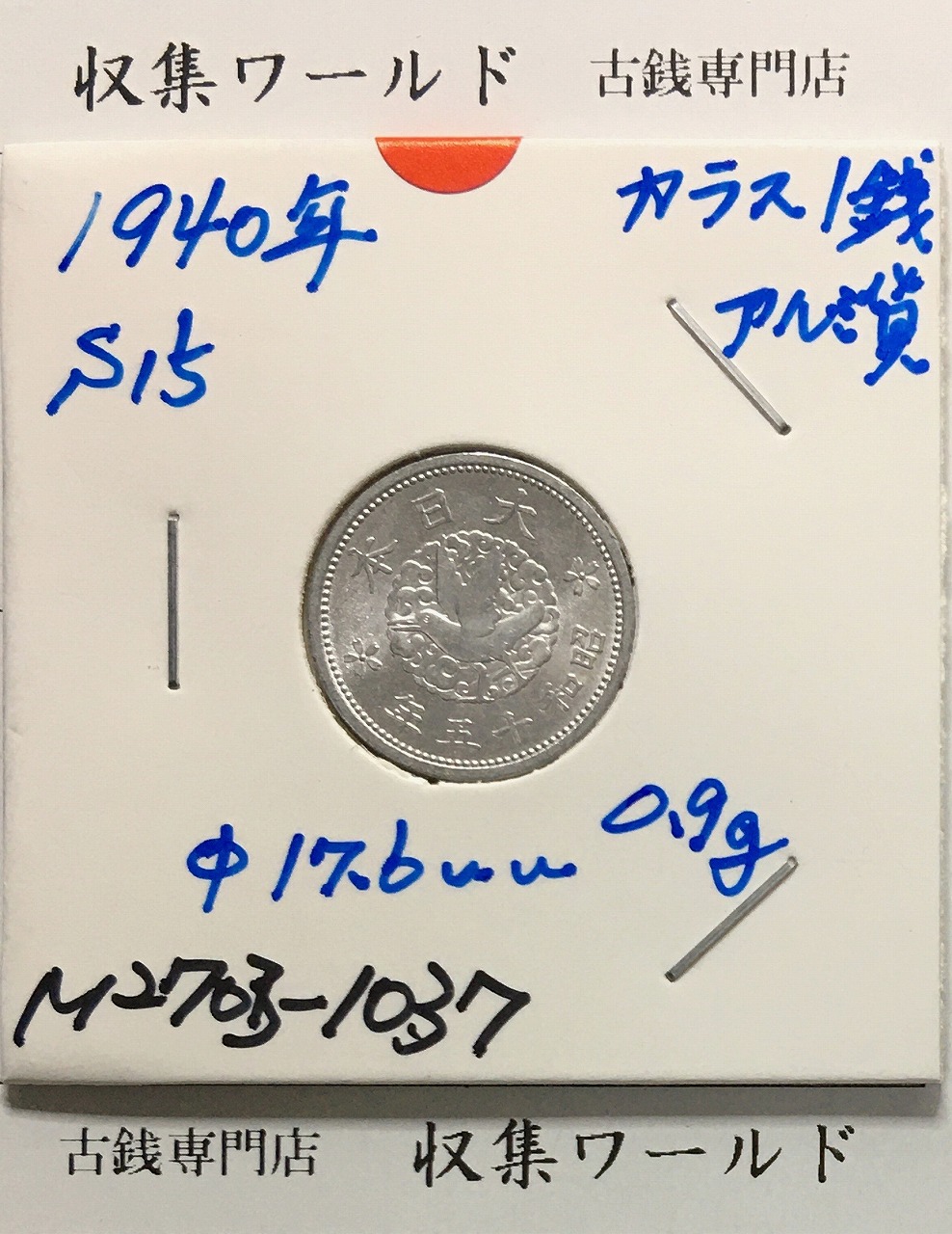 カラス 1銭アルミ貨 昭和15年(1940年) 近代貨幣 01-50 径 17.6mm 未使用に関しての問合せは、下記より気軽にご連絡下さい。