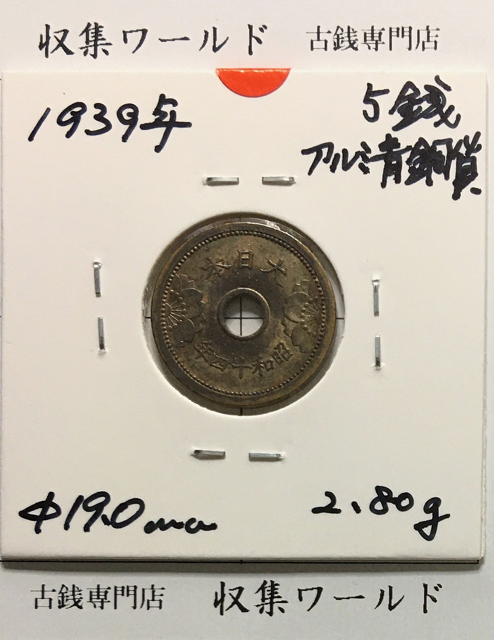5銭アルミ青銅貨 昭和14年(1939) 五銭アルミ青銅貨 近01-41/極美品-1017に関しての問合せは、下記より気軽にご連絡下さい。