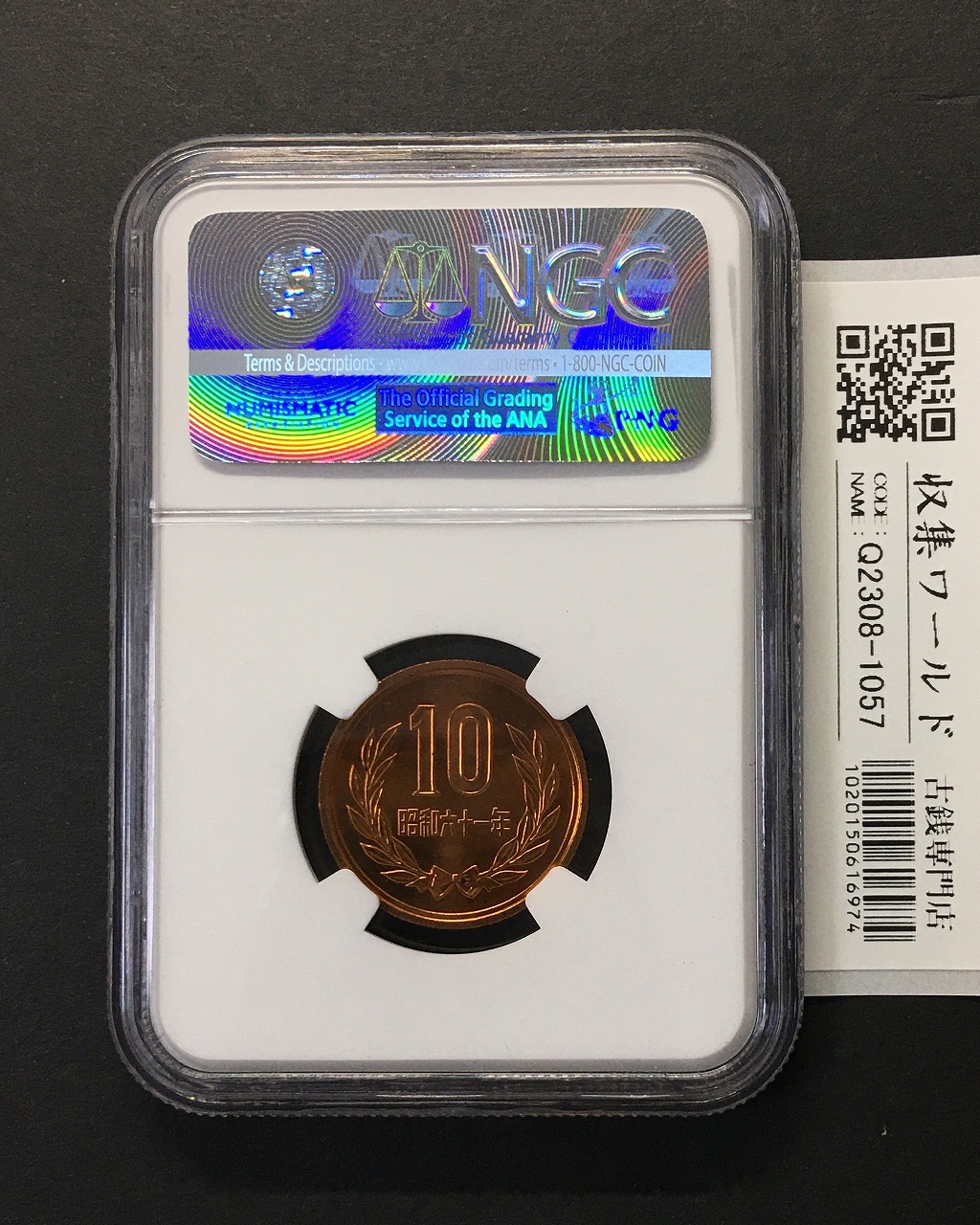 10円青銅貨 S61年銘版(1986) 特年/前期 未使用 NGC社MS64RD/PLに関しての問合せは、下記より気軽にご連絡下さい。