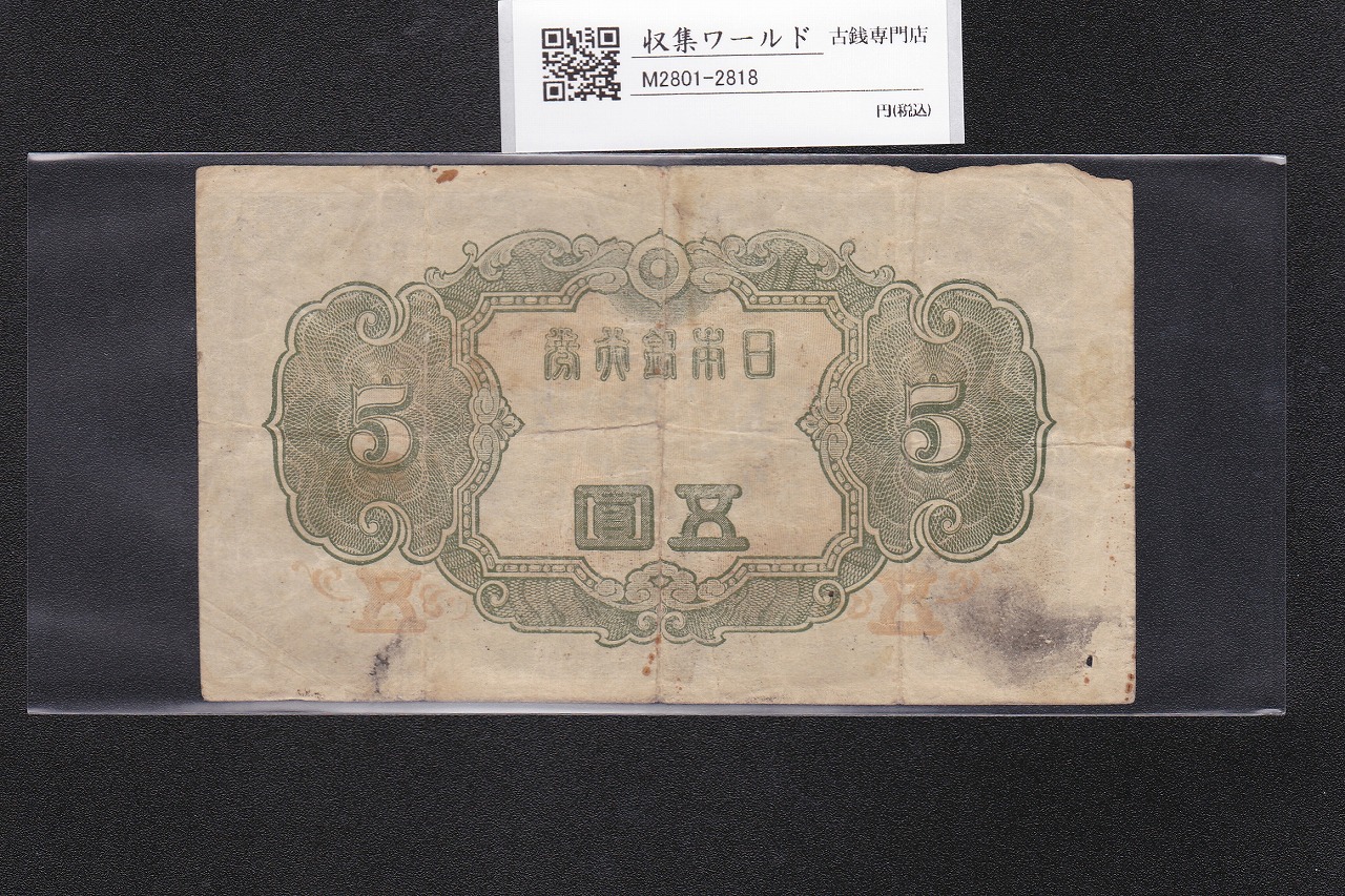 菅原道真 5円札 1944年銘 改正不換紙幣 3次5円札 印刷ズレエラー/82-642803 並品に関しての問合せは、下記より気軽にご連絡下さい。