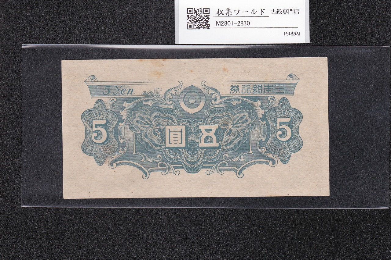 彩紋 5円紙幣 日本銀行券A号 1946年(昭和21年) ロットNo.19017 極美品に関しての問合せは、下記より気軽にご連絡下さい。