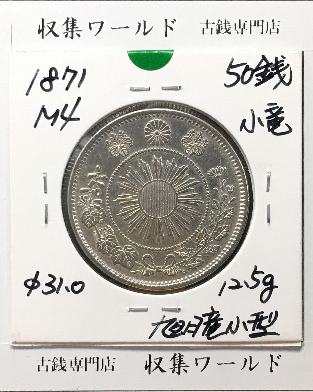旭日竜 50銭銀貨/小火炎/小竜 明治4年銘(1871年) 近代銀貨シリーズ 極美品