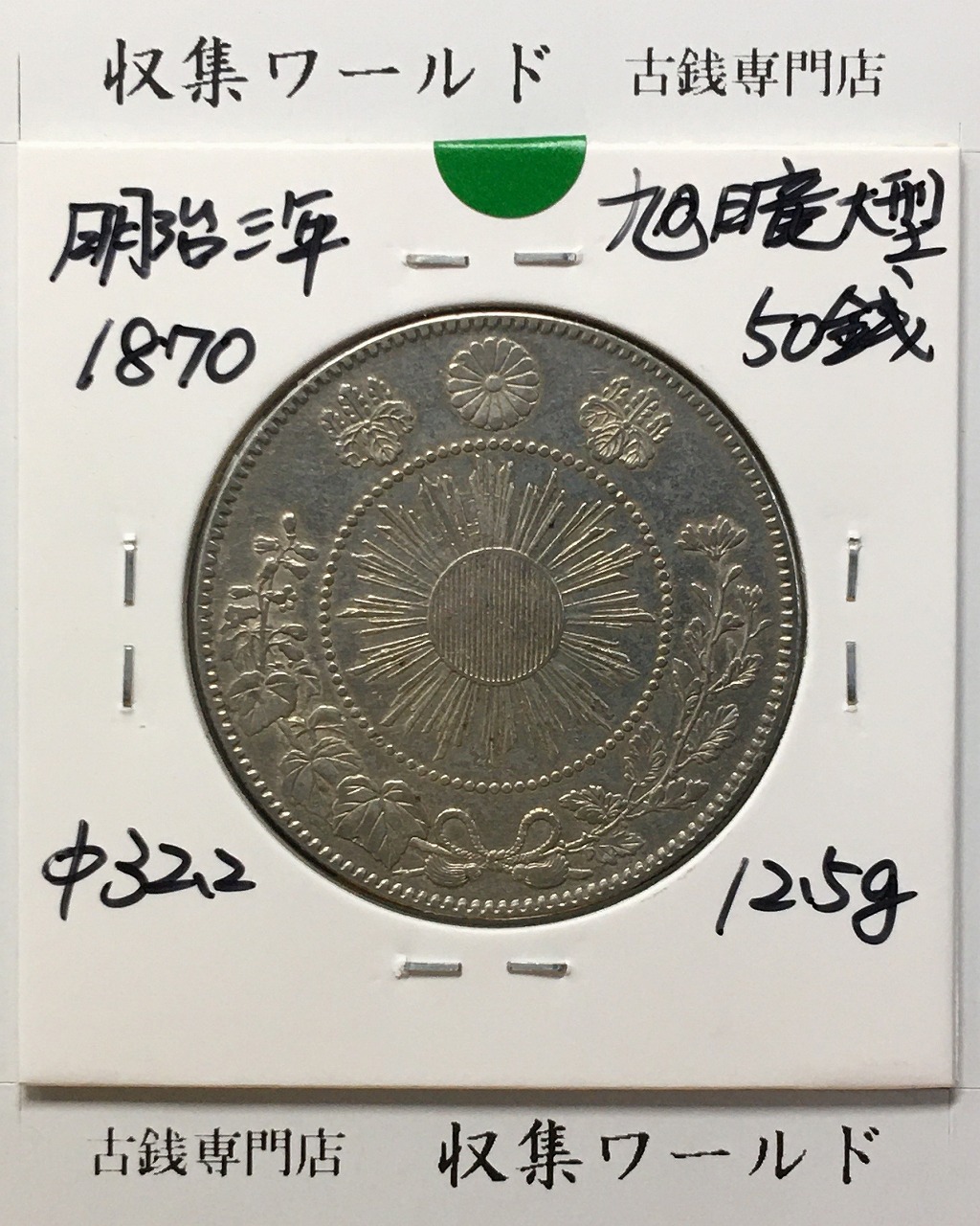 旭日竜 大型50銭銀貨 1870年(明治3年) 近代貨幣 五十銭 準未品