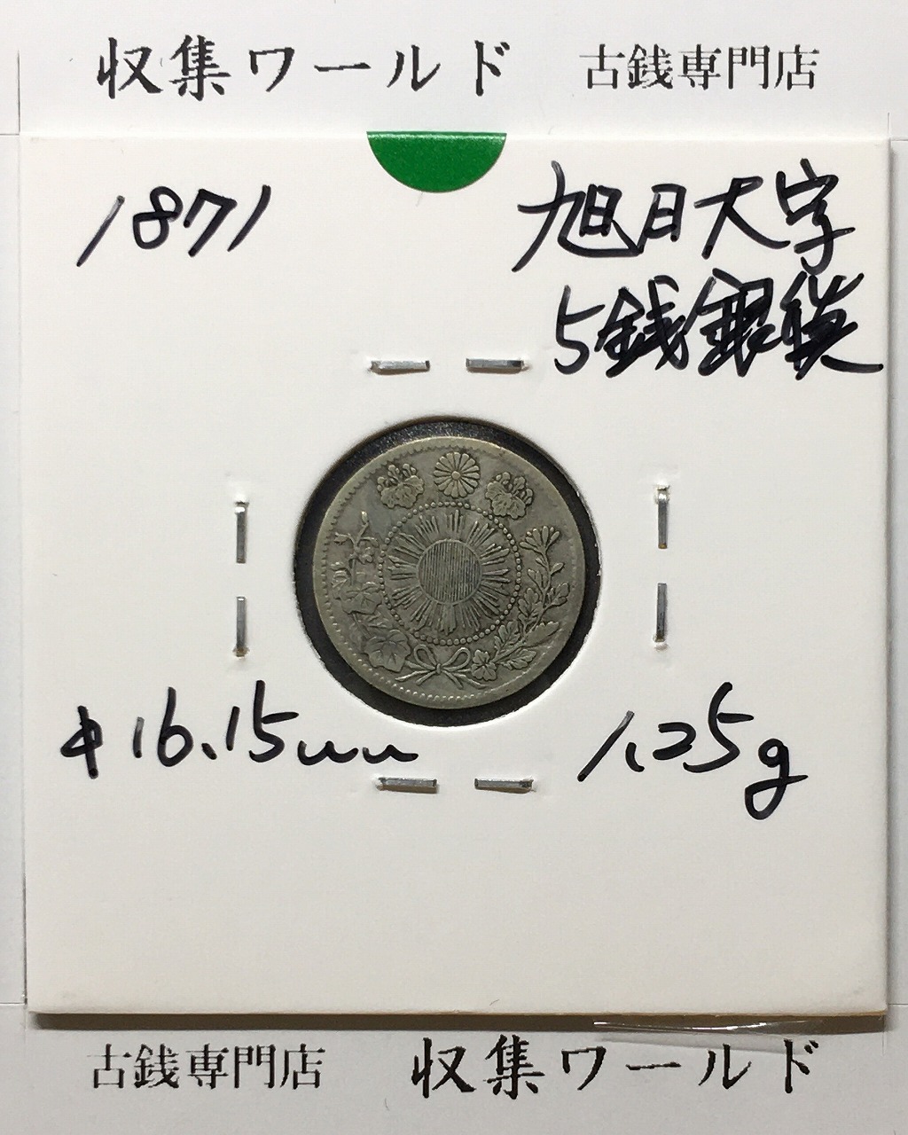 旭日大字 5銭銀貨 明治4年銘(1871年) 後期/量目1.25g/近34 美品に関しての問合せは、下記より気軽にご連絡下さい。