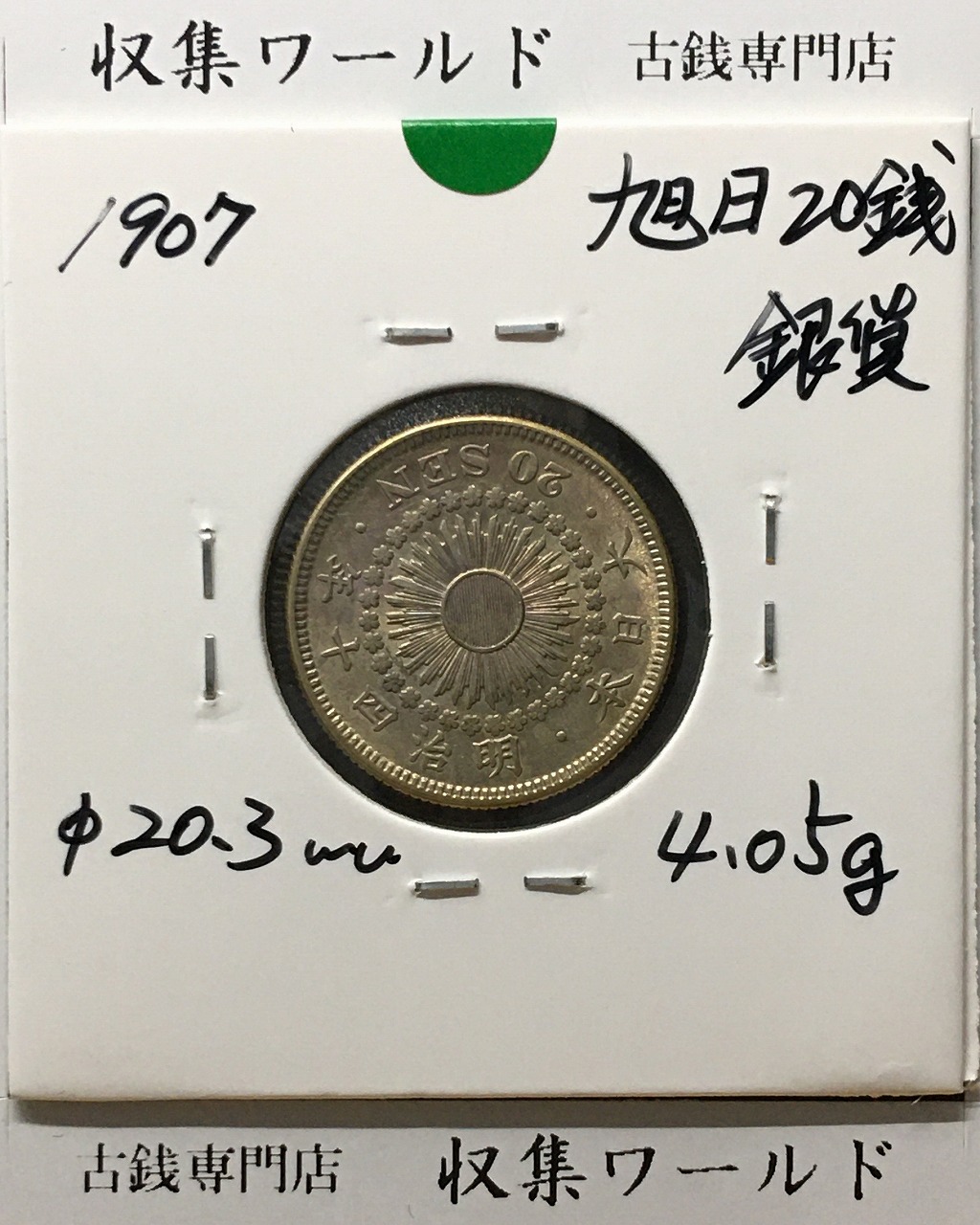 旭日 20銭銀貨 1907年(明治40年銘) 二十銭銀貨/近22 未使用に関しての問合せは、下記より気軽にご連絡下さい。
