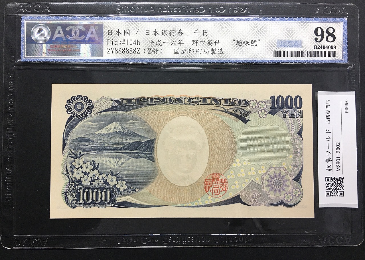 野口英世 1000円札 2004年 黒 2桁 ゾロ目 ZY888888Z 完未品ACCA68EPQに関しての問合せは、下記より気軽にご連絡下さい。