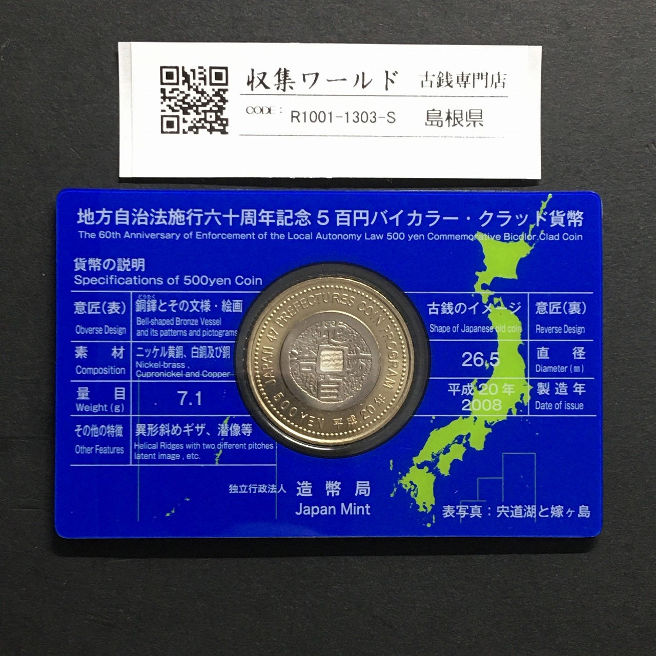 500円バイカラークラッド貨 地方自治法施行60周年記念 島根県 カード型に関しての問合せは、下記より気軽にご連絡下さい。