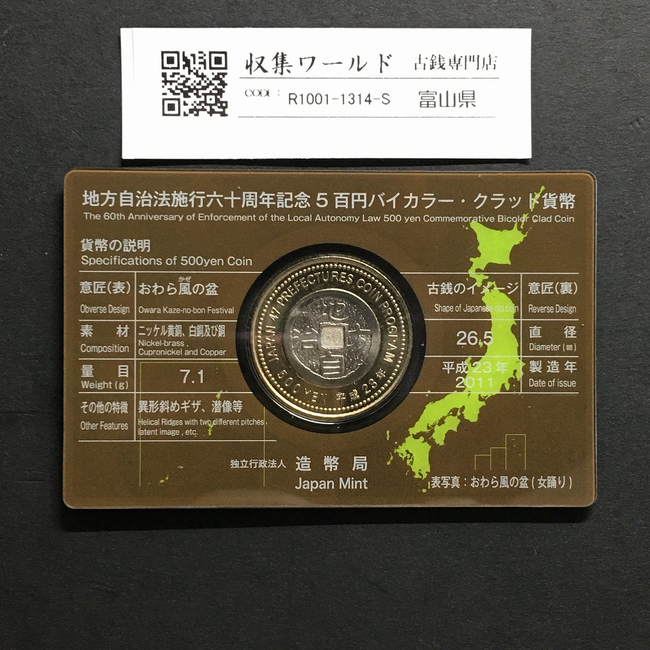 500円バイカラークラッド貨 地方自治法施行60周年記念 富山県 カード型に関しての問合せは、下記より気軽にご連絡下さい。