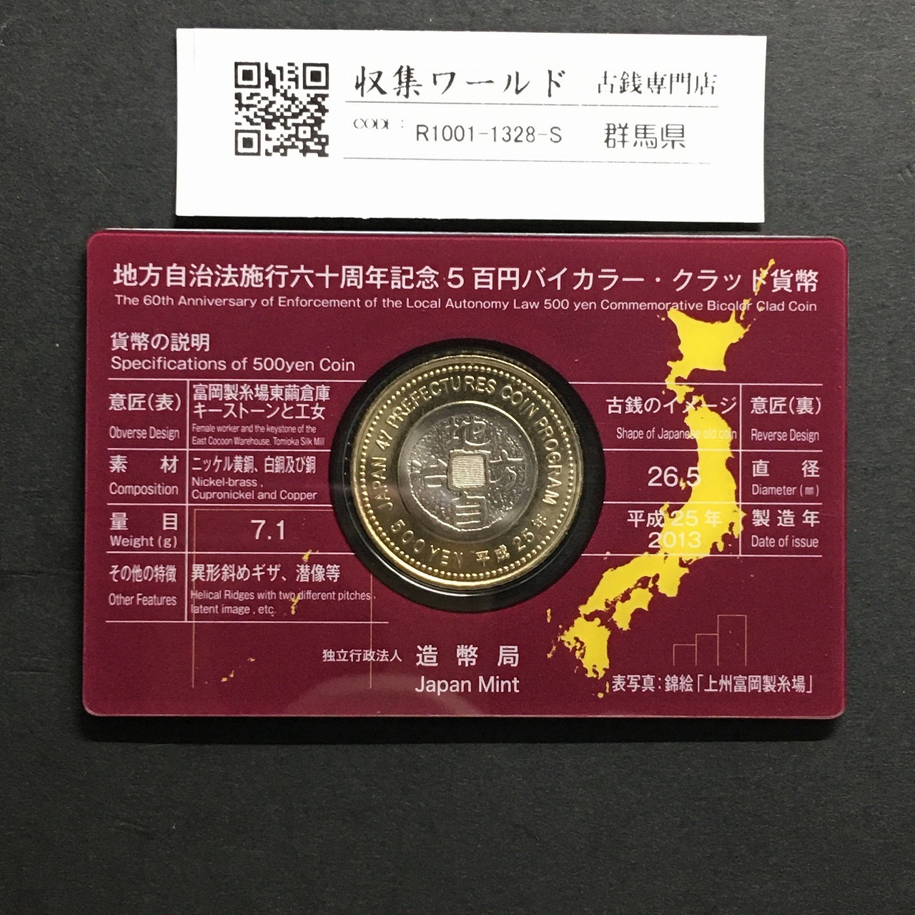 500円バイカラークラッド貨 地方自治法施行60周年記念 群馬県 カード型に関しての問合せは、下記より気軽にご連絡下さい。
