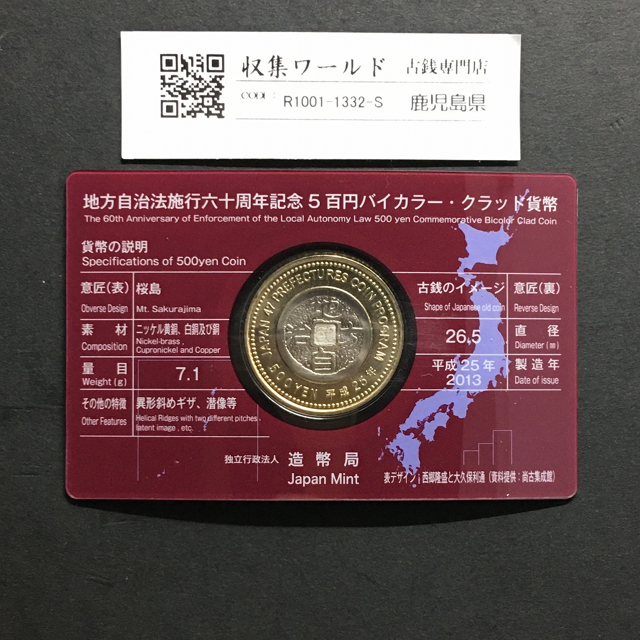 500円バイカラークラッド貨 地方自治法施行60周年記念 鹿児島県 カード型