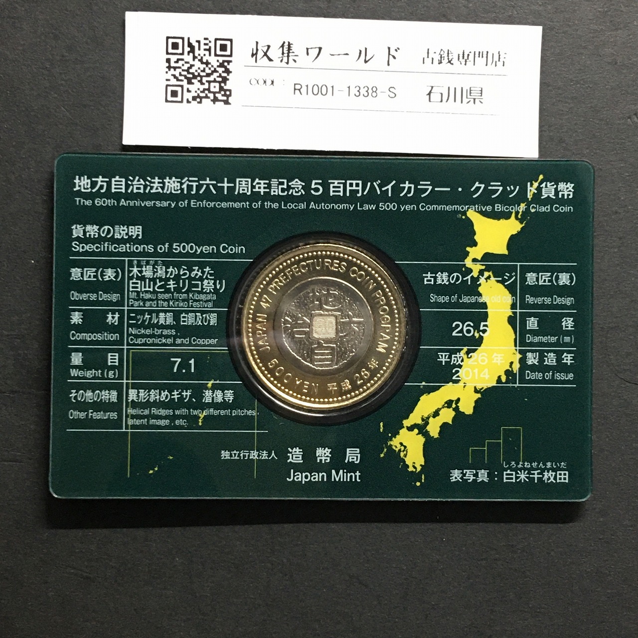 500円バイカラークラッド貨 地方自治法施行60周年記念 石川県 カード型