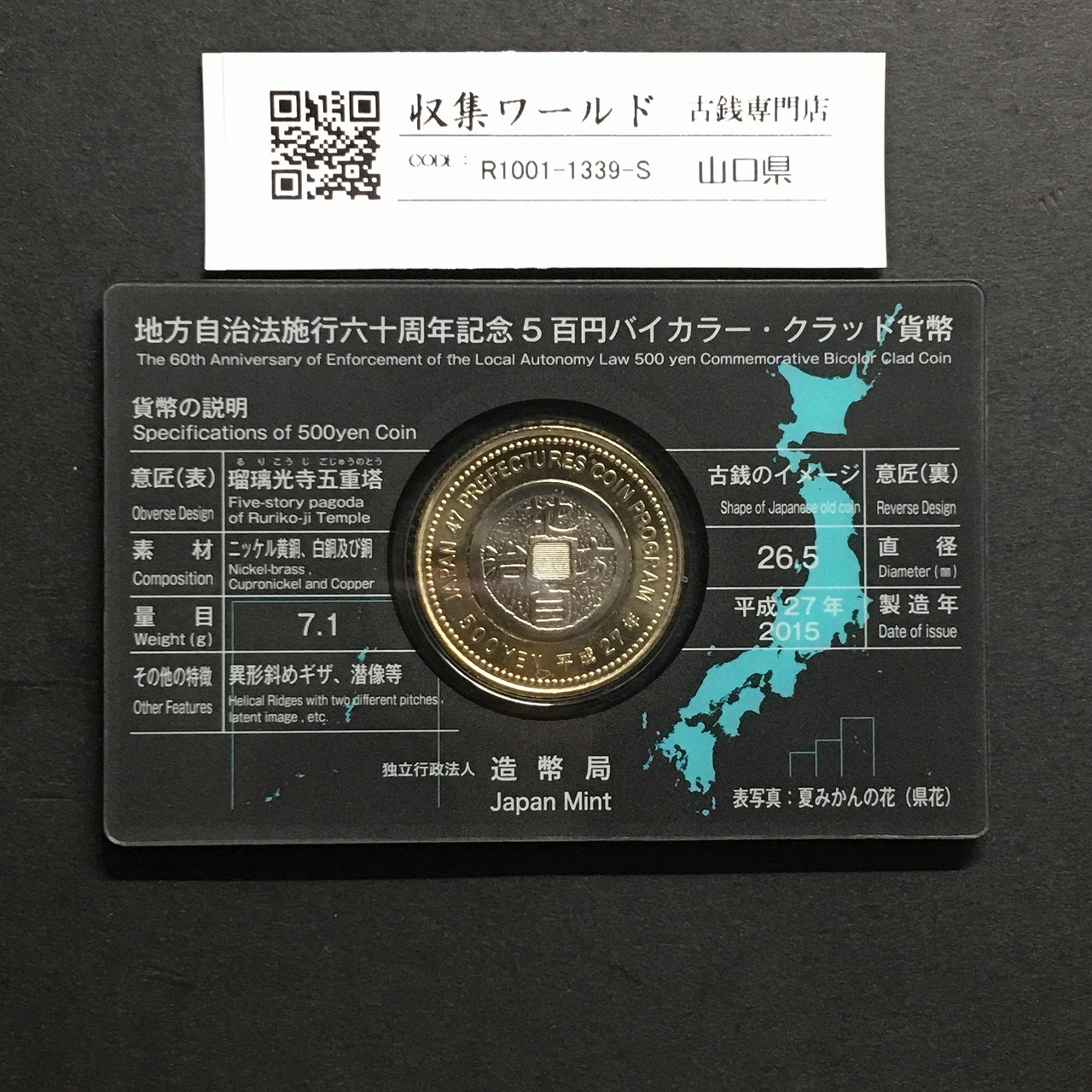 500円バイカラークラッド貨 地方自治法施行60周年記念 山口県 カード型