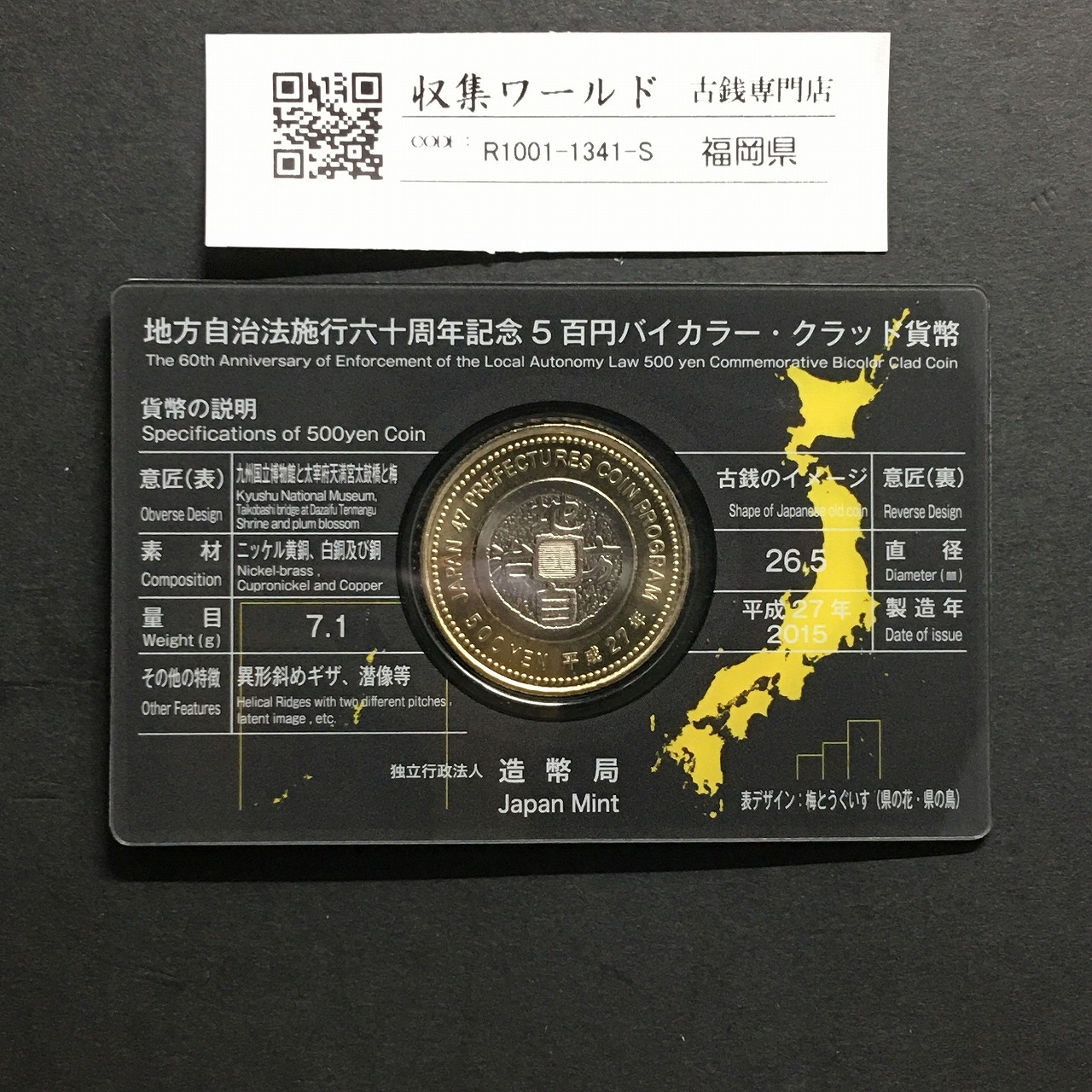 500円バイカラークラッド貨 地方自治法施行60周年記念 福岡県 カード型に関しての問合せは、下記より気軽にご連絡下さい。