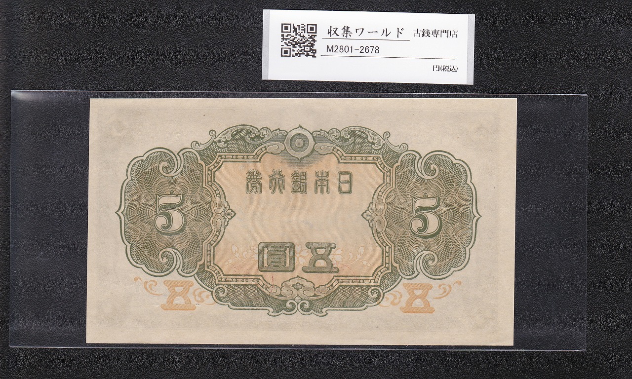 菅原道真 5円札 1944年銘 改正不換紙幣 3次5円札/29-142852 未使用