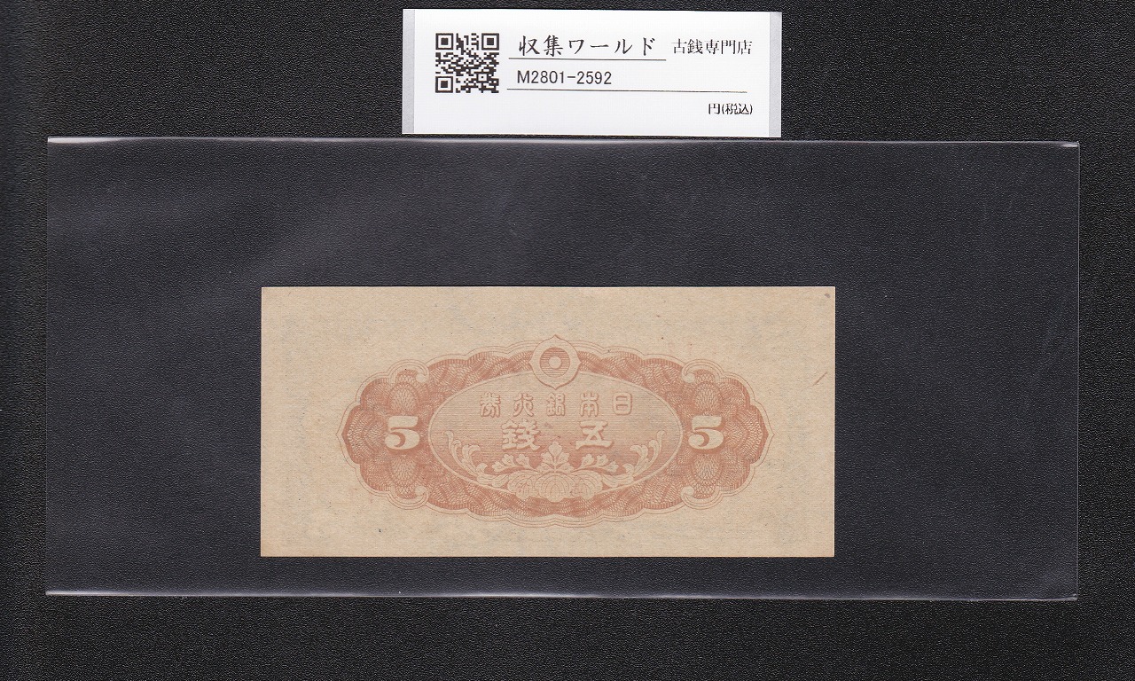 楠公 5銭札 昭和19年(1944年) 日本銀行券/楠正成像/五銭 終組No.11 未使用-2592に関しての問合せは、下記より気軽にご連絡下さい。