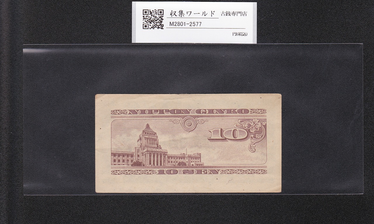 日本銀行券A号 ハト10銭紙幣/国会議事堂 1947年銘 No.12415 極美品
