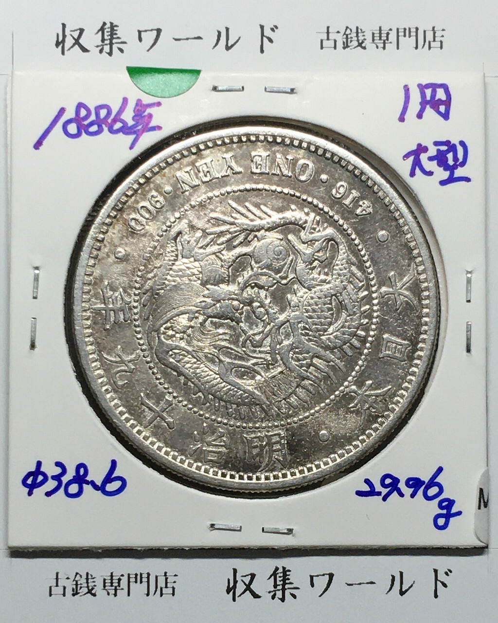 新1円銀貨(大型) 明治19年銘(1886年) 近代貨幣シリーズ/1圓 美品に関しての問合せは、下記より気軽にご連絡下さい。