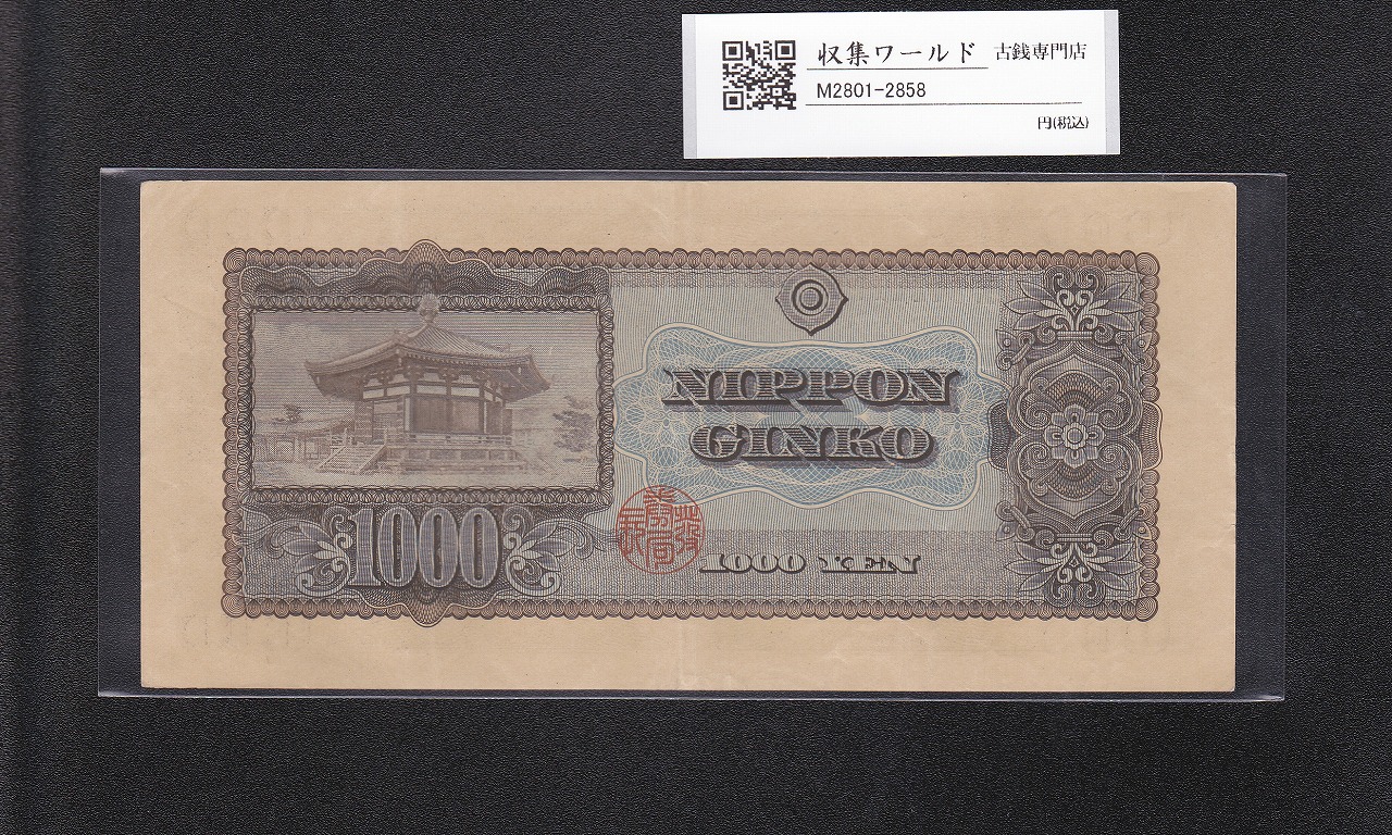 聖徳太子 1000円紙幣 (昭和25)1950年 前期 1桁 X342417Z 美品に関しての問合せは、下記より気軽にご連絡下さい。
