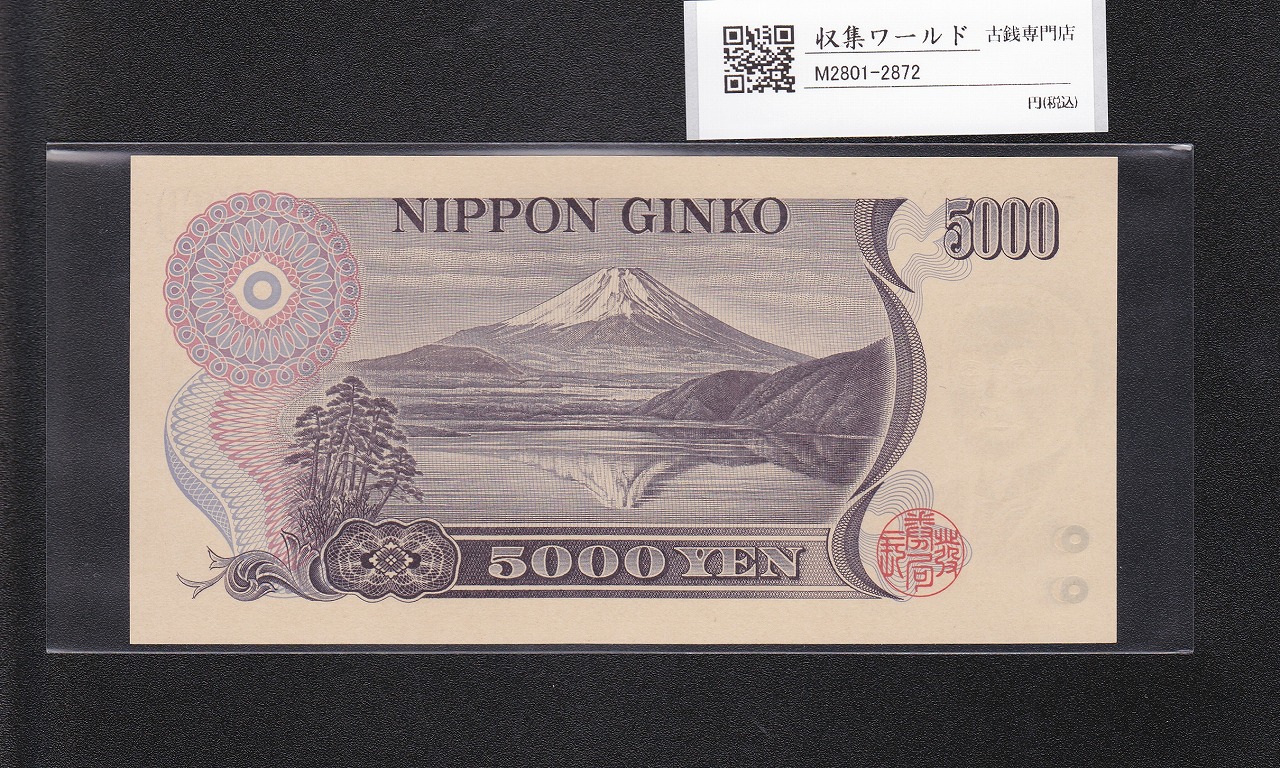 新渡戸 5000円紙幣 1984年 大蔵省銘 黒色 1桁趣番 A697792C 完未品