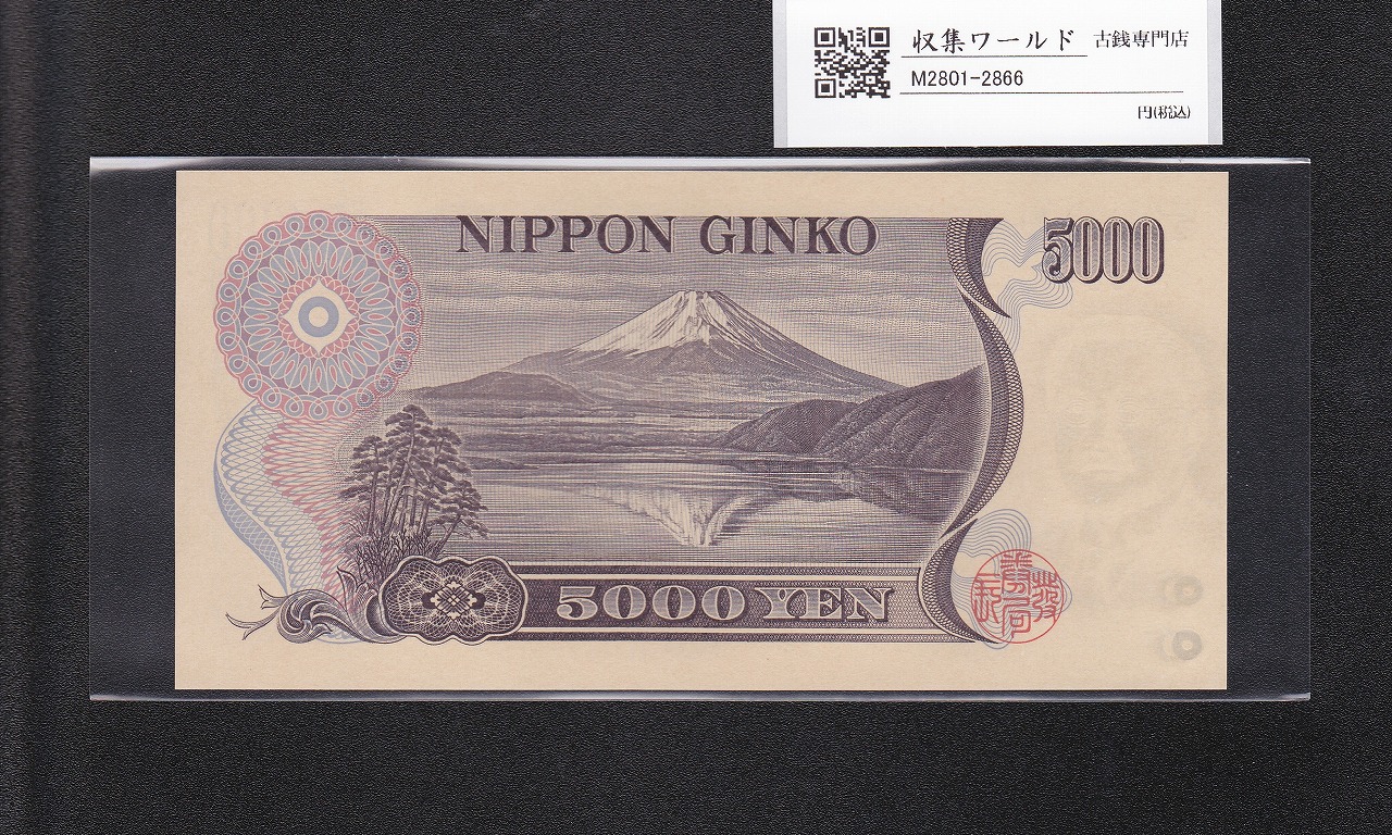 新渡戸 5000円紙幣 1993年 大蔵省銘 褐色 1桁趣番 J844866V 完未品に関しての問合せは、下記より気軽にご連絡下さい。
