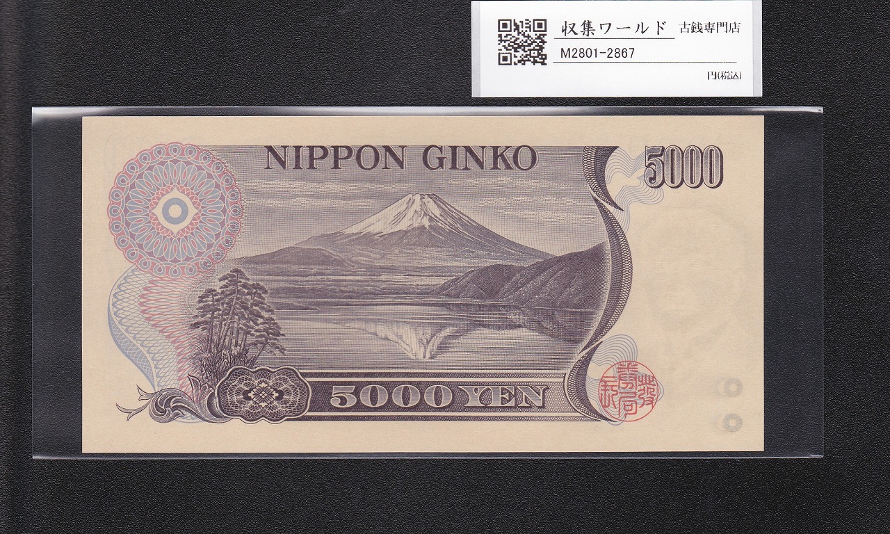 新渡戸 5000円紙幣 1993年 大蔵省銘 褐色 1桁趣番 J844867V 完未品