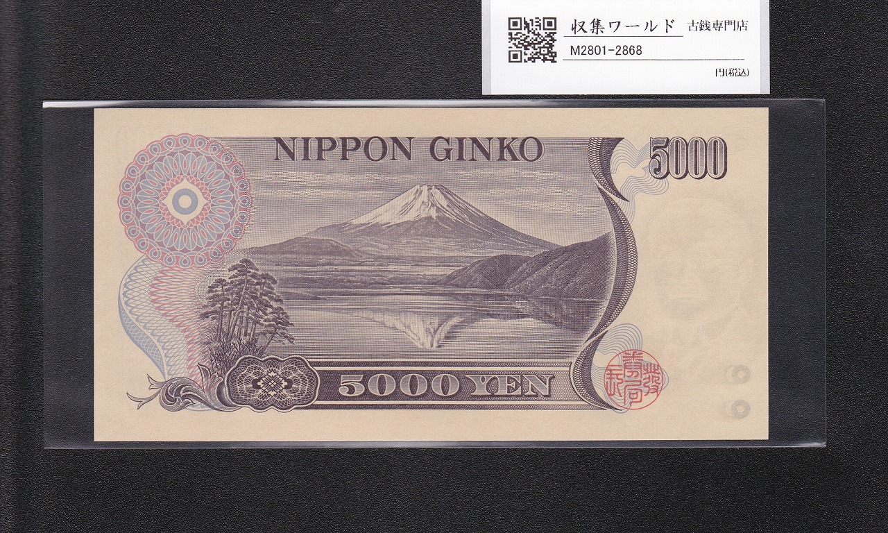 新渡戸 5000円紙幣 1993年 大蔵省銘 褐色 1桁趣番 J844868V 完未品