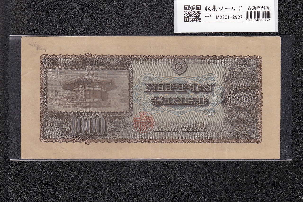 聖徳太子 1000円紙幣 1950年 (S25年銘A号券) 前期 1桁 X813378Y 美品に関しての問合せは、下記より気軽にご連絡下さい。