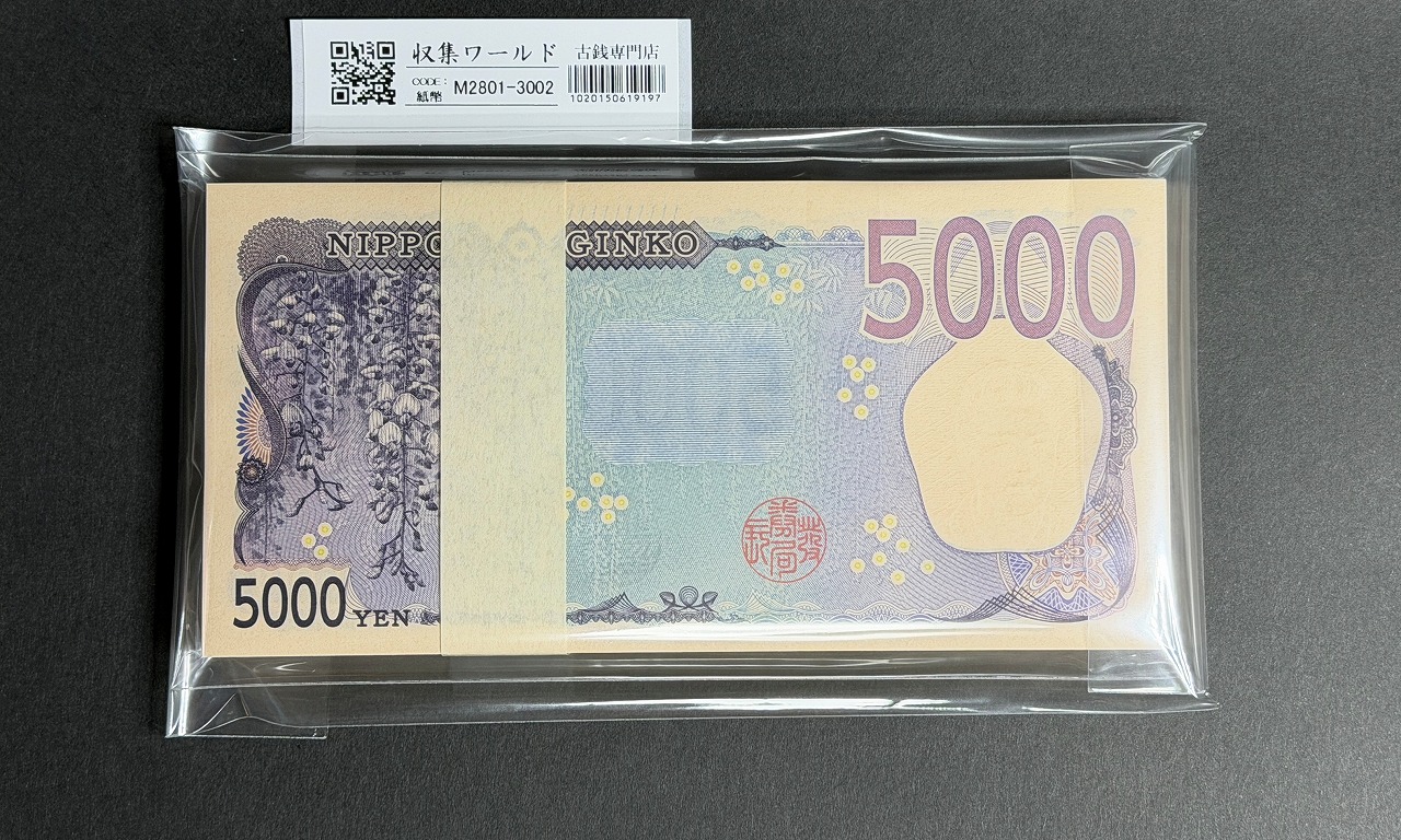 津田梅子 5000円紙幣 2024年銘 初期 AA211701〜800AA 連番 100枚束/完未品に関しての問合せは、下記より気軽にご連絡下さい。