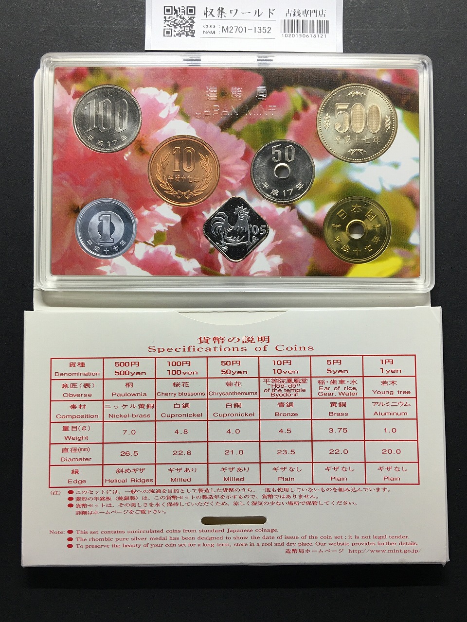 2005年銘版(平成17年) 桜の通り抜け 紅華 貨幣セット 銀メダル入り 完未品の詳細情報は、