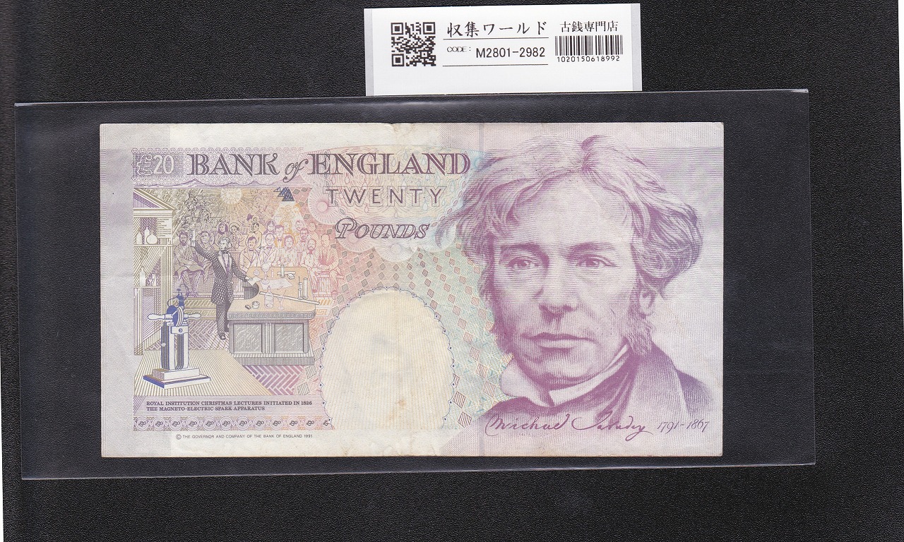 英国 20ポンド札/1991年 エリザベス女王像 イギリス銀行 U65409984 流通美品に関しての問合せは、下記より気軽にご連絡下さい。