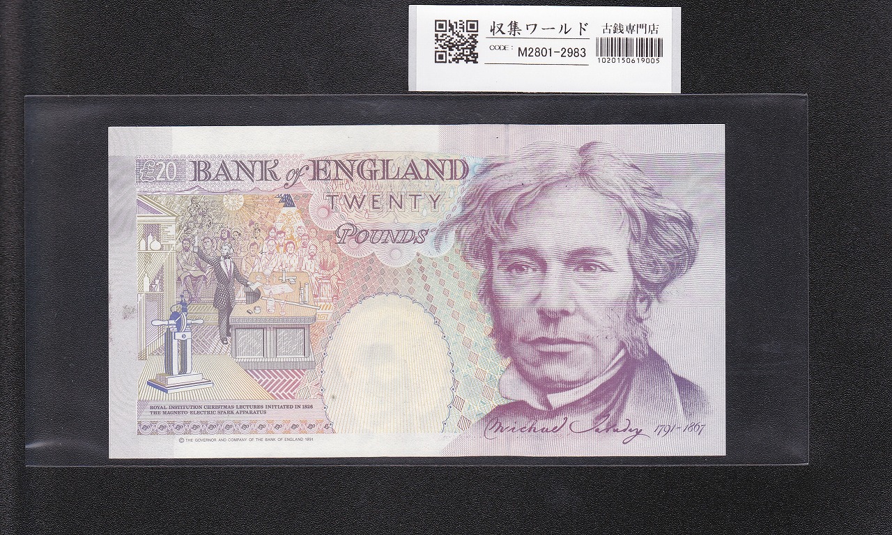 英国/イギリス 20ポンド紙幣 1991年 エリザベス女王像 番号N11082924 未使用に関しての問合せは、下記より気軽にご連絡下さい。