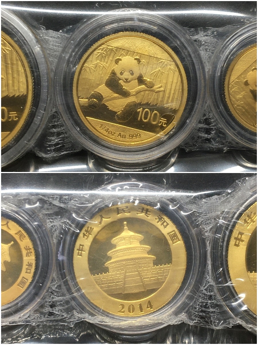 中国パンダ金貨 20元〜500元/5枚セット 2014年銘 純金999/PF仕様 カプセル入/未使用に関しての問合せは、下記より気軽にご連絡下さい。