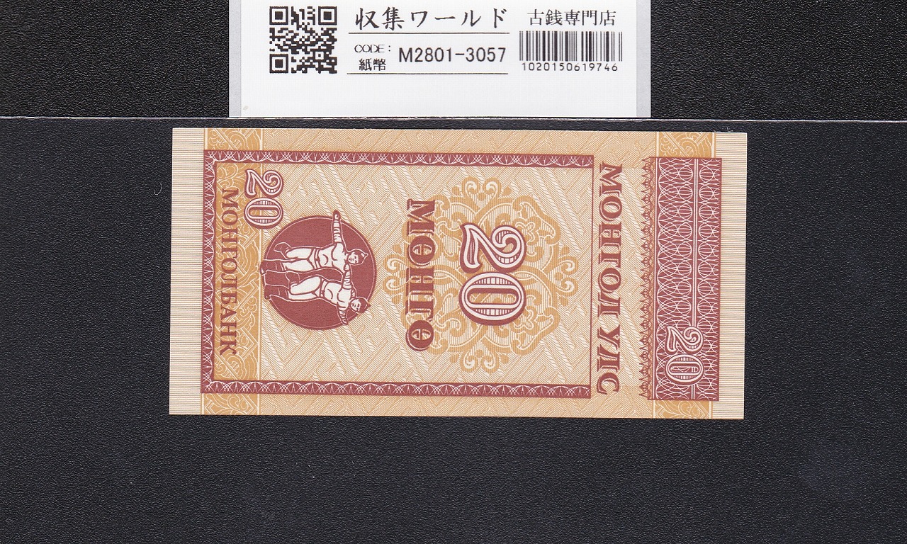 モンゴル紙幣 20ムング札/モンゴル相撲選手像 1993年銘/AA4989215 未使用に関しての問合せは、下記より気軽にご連絡下さい。