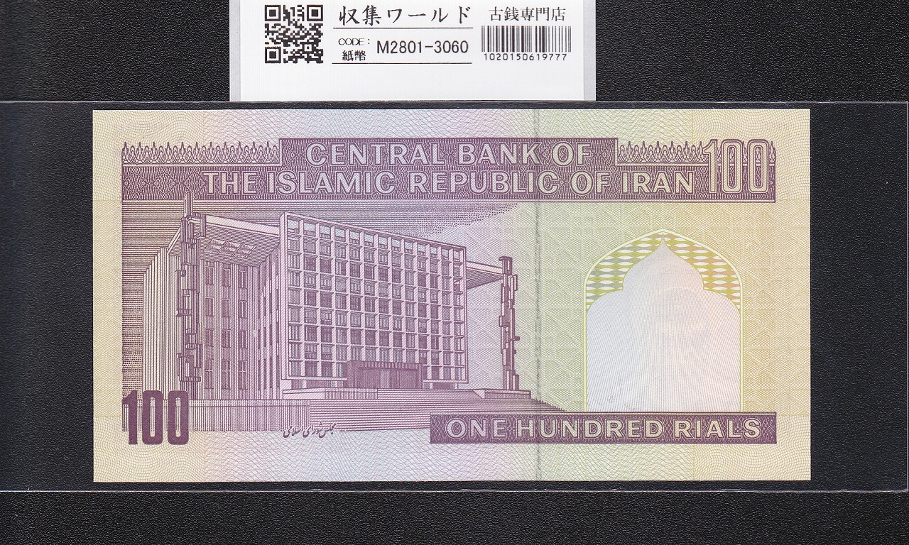 イラン紙幣 100リアル/1985年銘/ハサン・モッダレス肖像/番号 52-929415 未使用に関しての問合せは、下記より気軽にご連絡下さい。