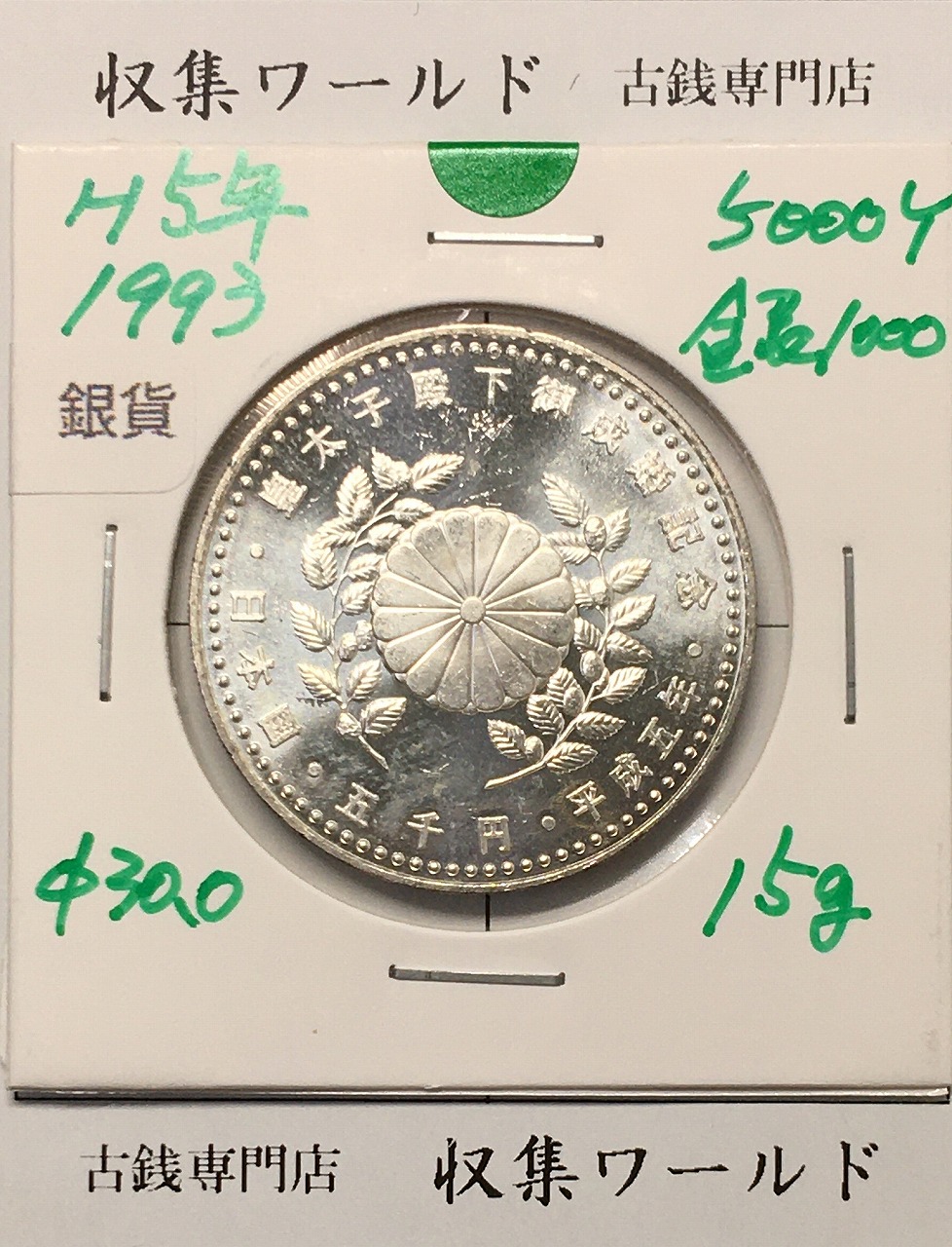 皇太子殿下御成婚記念 5000円銀貨 1993年(平成5年銘) 純銀 美品-1738に関しての問合せは、下記より気軽にご連絡下さい。
