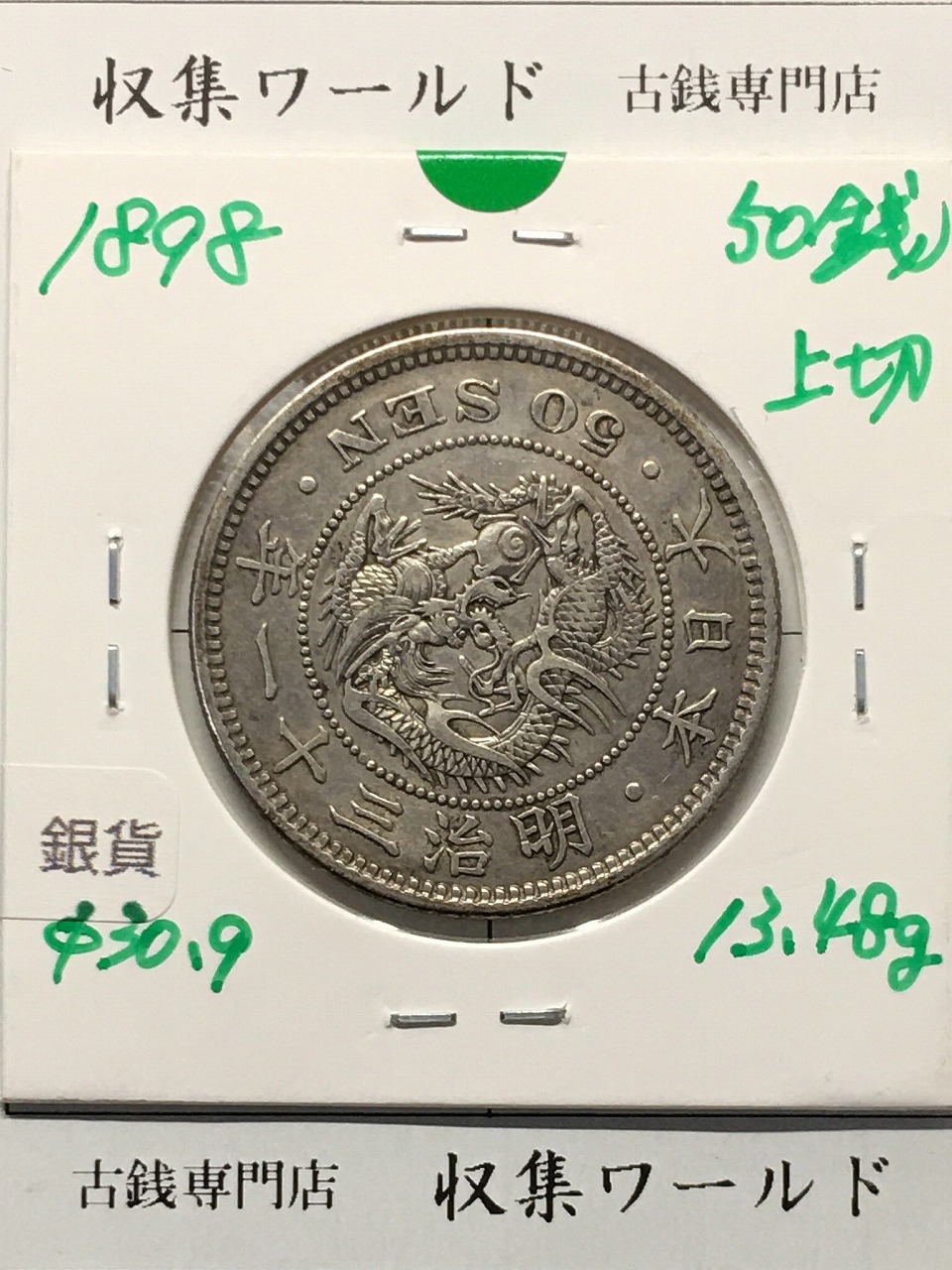 竜 50銭銀貨 1898年(明治31年) 上切/中年/50sen/極美品