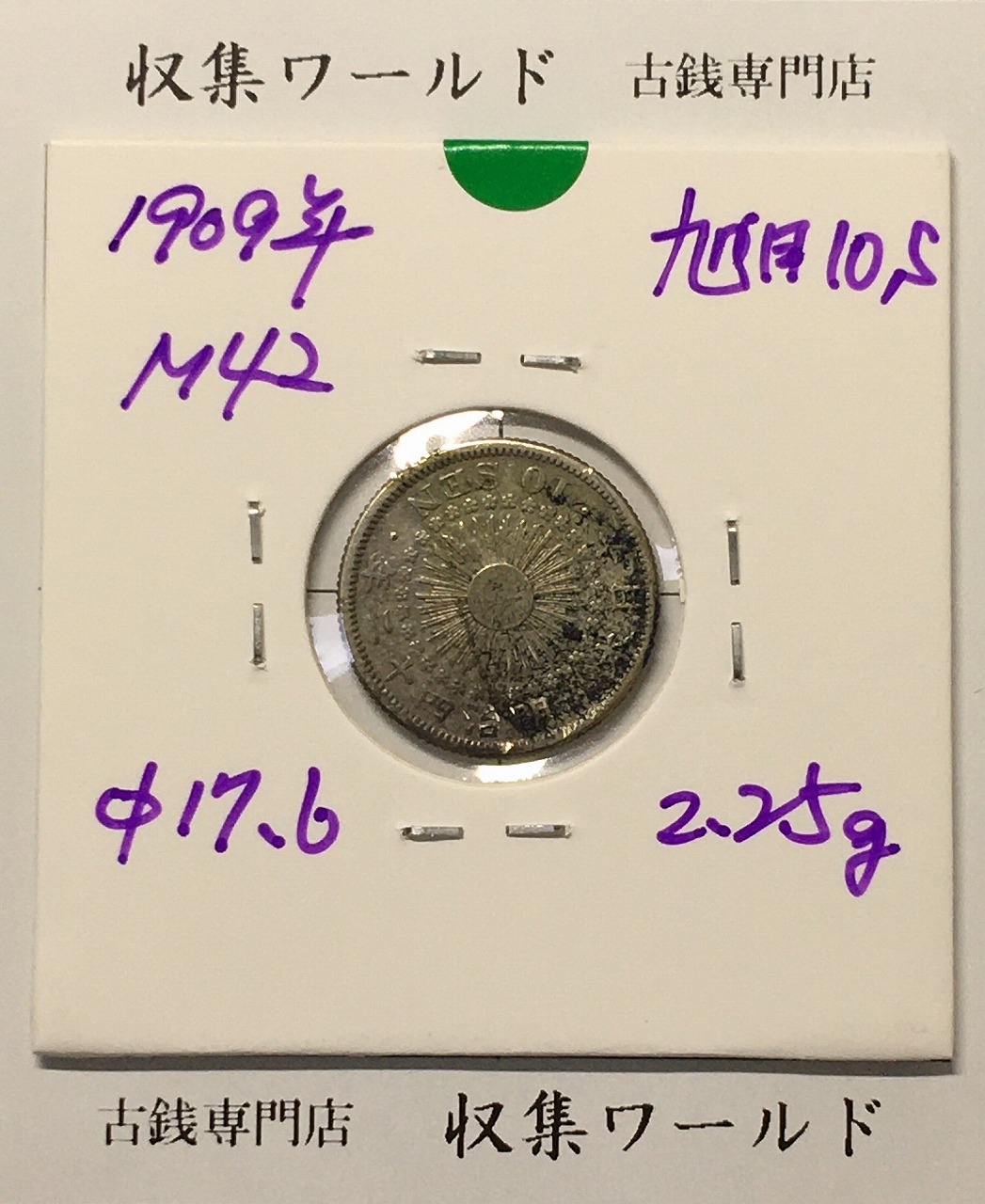 旭日 10銭銀貨 明治42年銘(1909年) 近代銀貨シリーズ 美品-1688に関しての問合せは、下記より気軽にご連絡下さい。