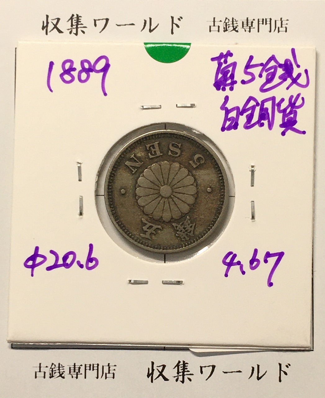菊 5銭白銅貨/菊紋 明治22年銘(1889年) 近代貨幣シリーズ 美品-1689に関しての問合せは、下記より気軽にご連絡下さい。