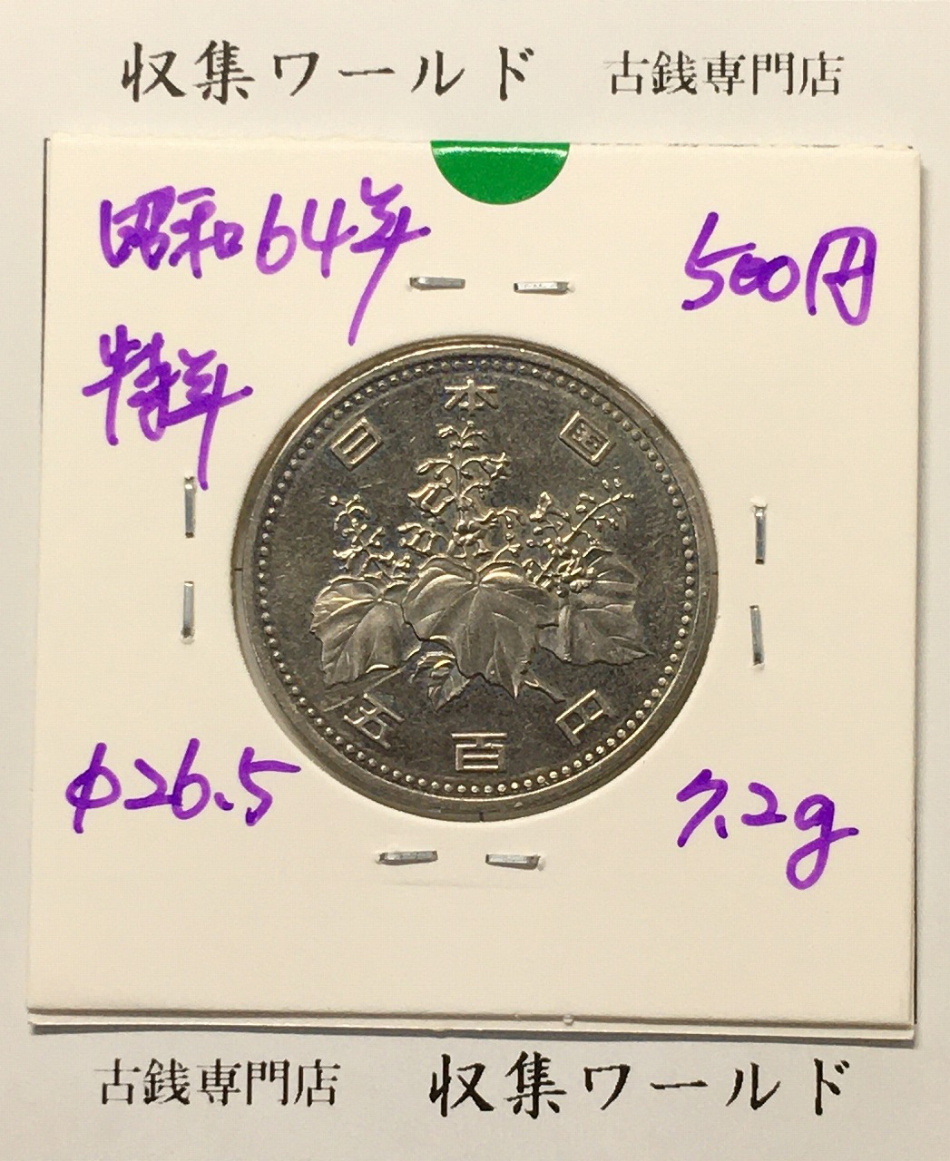 500円白銅貨 昭和64年銘 (特年) /五百円白銅貨 極美品-1691に関しての問合せは、下記より気軽にご連絡下さい。