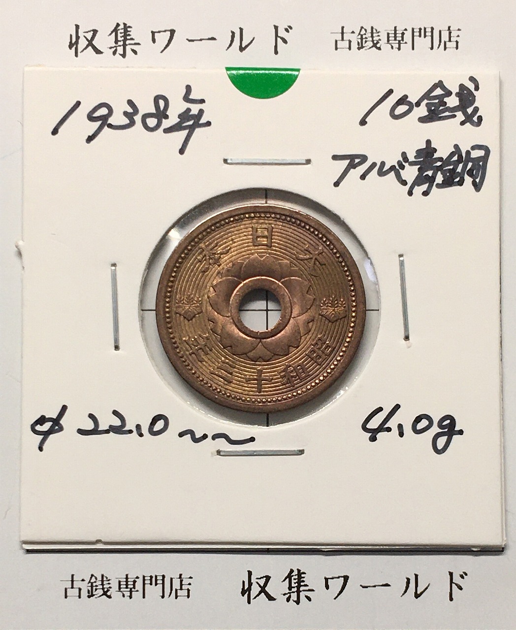 10銭アルミ青銅貨 昭和13年銘(1938)特年/近代貨幣/トーン有 未使用に関しての問合せは、下記より気軽にご連絡下さい。