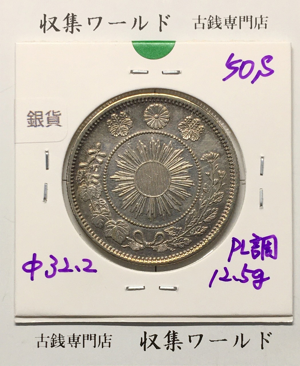 額面図案 : 旭日竜大型50銭銀貨 止本 PL調