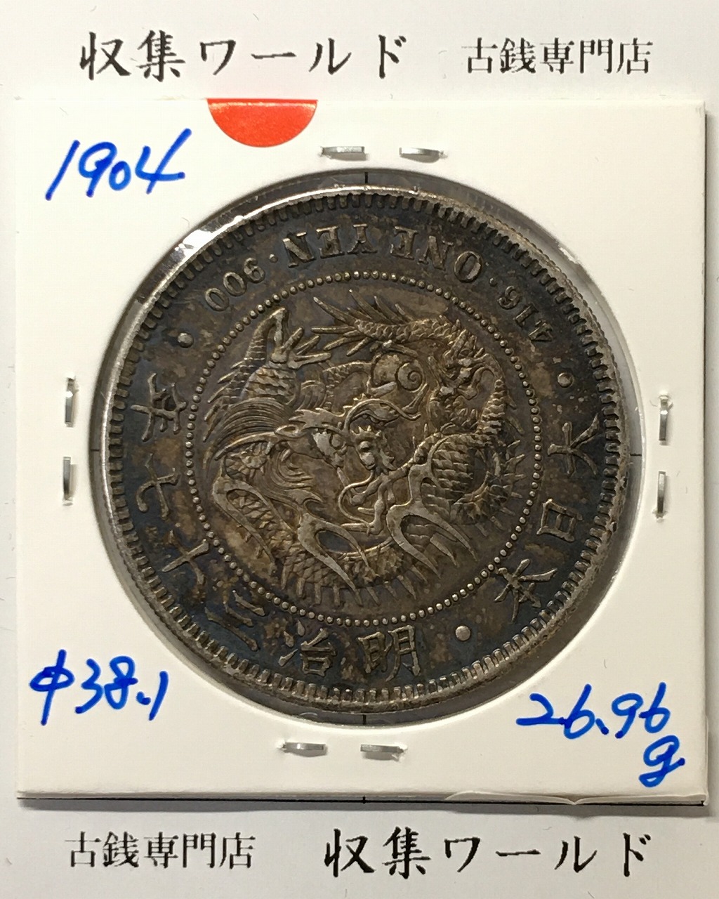 新1円銀貨(小型) 明治37年銘(1904年) 近代貨幣シリーズ/1圓銀貨 美品-1859に関しての問合せは、下記より気軽にご連絡下さい。