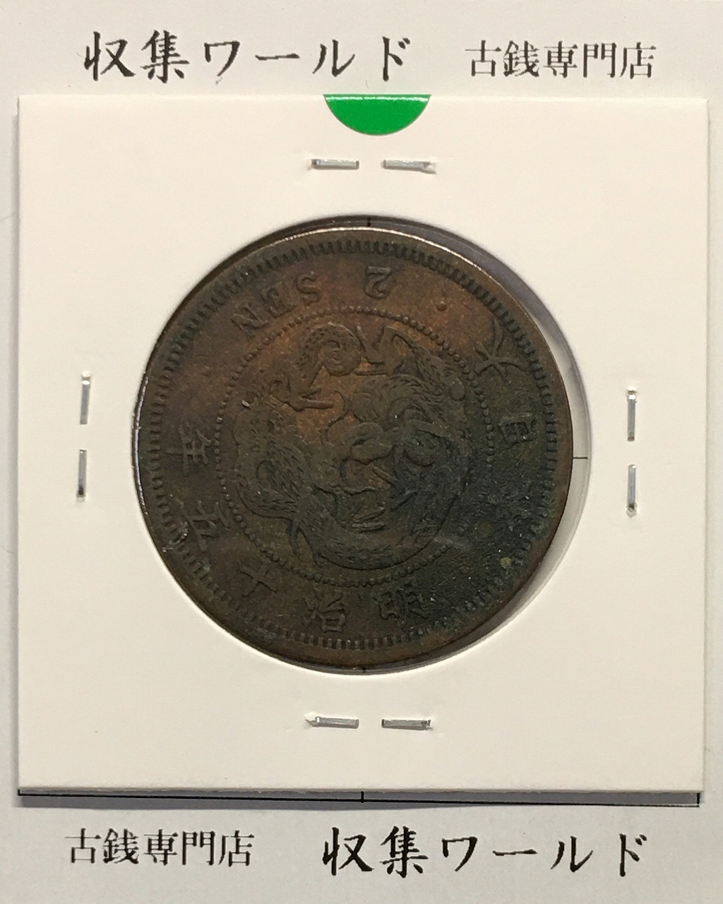 2銭銅貨 明治15年銘(1882年) 竜2銭/波ウロコ 流通済美品に関しての問合せは、下記より気軽にご連絡下さい。