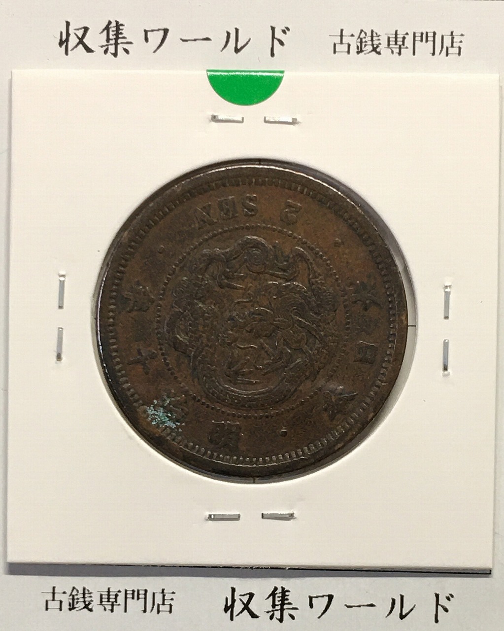 2銭銅貨 明治10年銘(1877年) 竜2銭/角ウロコ 流通済美品に関しての問合せは、下記より気軽にご連絡下さい。