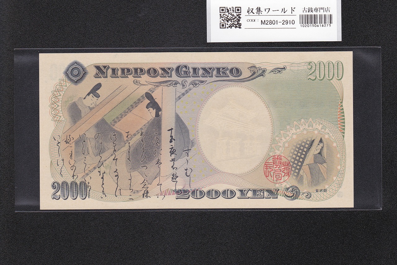 守礼門 2000円札 2000年銘 源氏物語絵巻 初版 AA-A券 2桁 AA378906A 未使用に関しての問合せは、下記より気軽にご連絡下さい。
