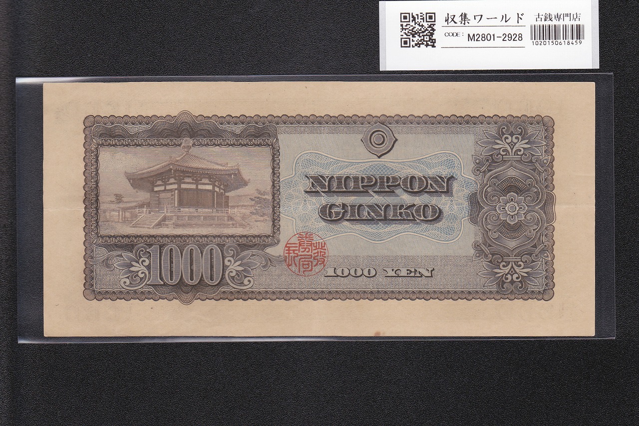 聖徳太子 1000円紙幣 1950年(昭和25年) 前期 1桁 U078390W 流通極美品に関しての問合せは、下記より気軽にご連絡下さい。
